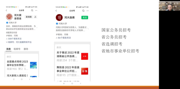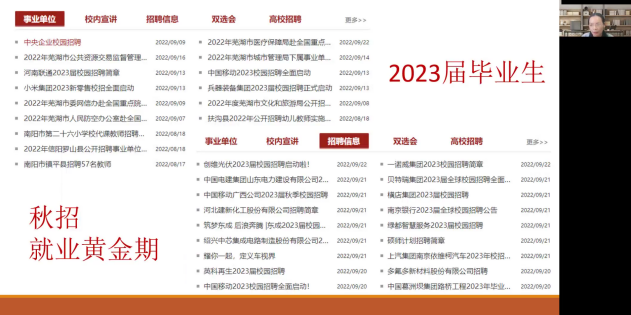 随后,吴瑷瑷结合学院2018级本科生考研情况及全国大学生考研情况的相关数据进行了对比分析,建议同学们从“理性看待考研”“合理确定目标”“全力以赴备考”三方面着手,提高一战成功率。“考研的终极目标还是为了工作,同学们应结合自身发展目标,理性确定努力能够实现的目标,争取一次上岸。既然确定了目标与方向,就风雨兼程,全力以赴。”最后,吴瑷瑷建议同学们抓住“秋招”这个就业黄金期,备考的同时积极关注“亚搏平台就业创业信息网”“河大就业创业”“河大选调”等平台发布的求职就业信息,给自己预留一个备选方案。