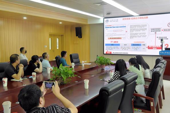本期午茶会首次采取报告人云端模式进行。通过线上线下相结合方式,远在上海的魏冬青教授与校内外60余人进行了充分交流。与谈人郭向前从医学生物信息学专业角度与魏冬青深入探讨了药物筛选及软件应用的相关问题。生命科学学院魏建设,药学院任畅、王怀友,数学与统计学院庞志峰,化学化工学院孙琳,天然药物与免疫工程重点实验赵媛,纳米材料工程研究中心邹雪艳等从不同研究领域和视角,与魏冬青教授进行了深入研讨。报告深入浅出,交流轻松愉快,会场学术氛围浓厚。