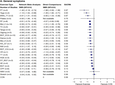 图A.评估不同运动模式对帕金森病整体临床症状的影响