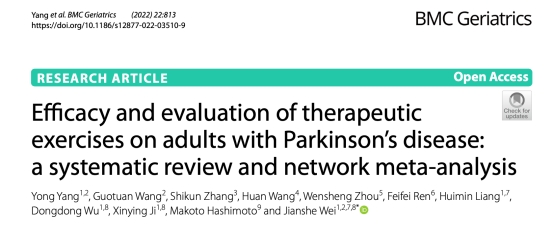 2022年10月21日,亚搏平台生命科学学院脑科学研究所魏建设教授研究团队在国际医学顶级期刊BMC Geriatrics(一区Top,IF =4.070)发表了题为“Efficacy and evaluation of therapeutic exercises on adults with Parkinson’s disease:a systematic review and network meta-analysis”的最新研究论文,揭示了不同运动方式和类型在帕金森病运动和非运动症状疗效改善方面的综合评定效果。
